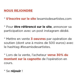 Le principe est simple : les artistes mettent en vente une sélection de trois œuvres avec le hashtag #lesamisdesartistes